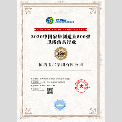 獎(jiǎng) 項(xiàng):2020中國家居制造業(yè)500強(qiáng)衛(wèi)浴潔具行業(yè)——恒潔